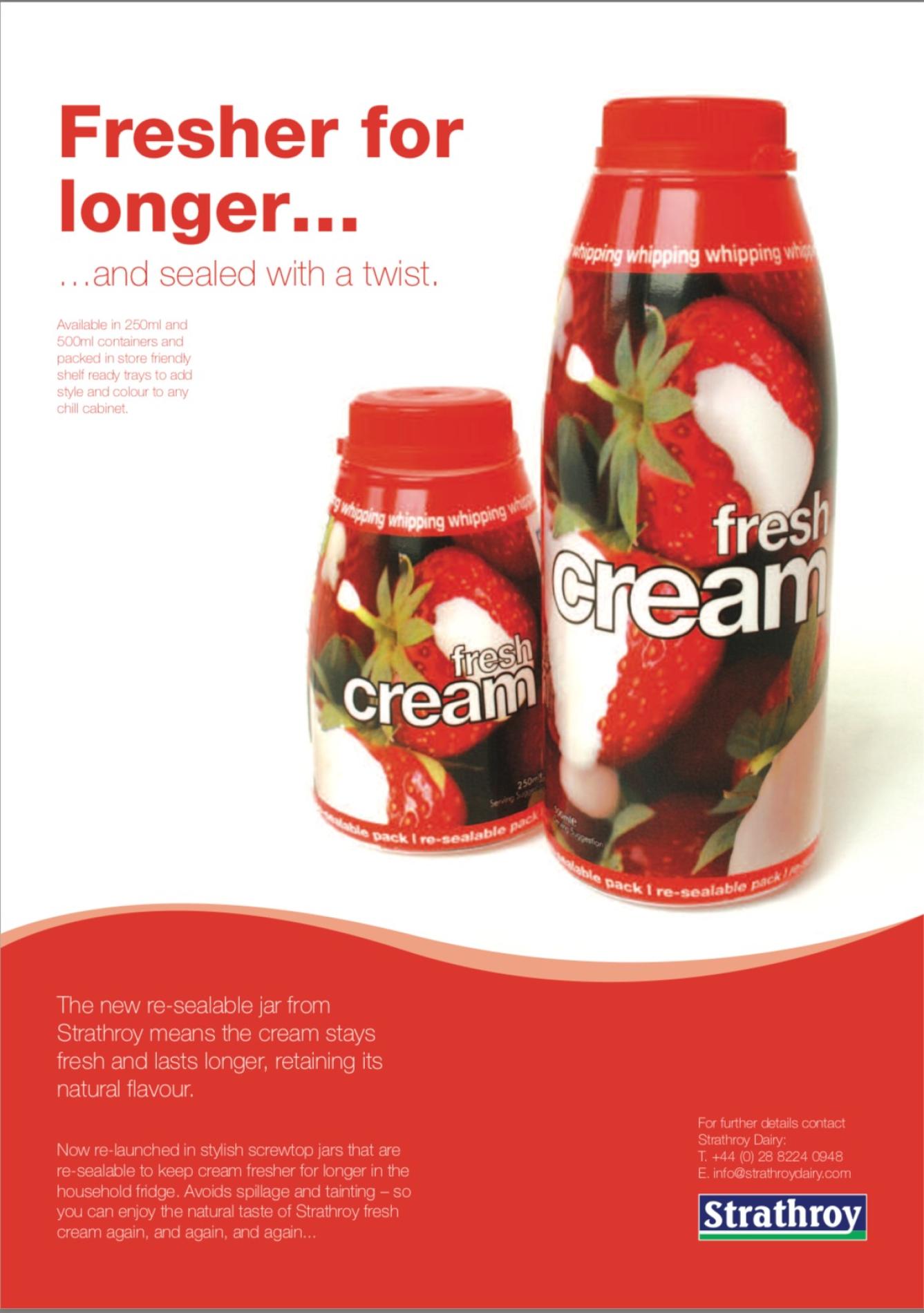 Read MoreStrathroy were the first Dairy in Ireland to introduce the new form of cream container incorporating a screw top. This means the cream stays fresher for longer and can be used again and again