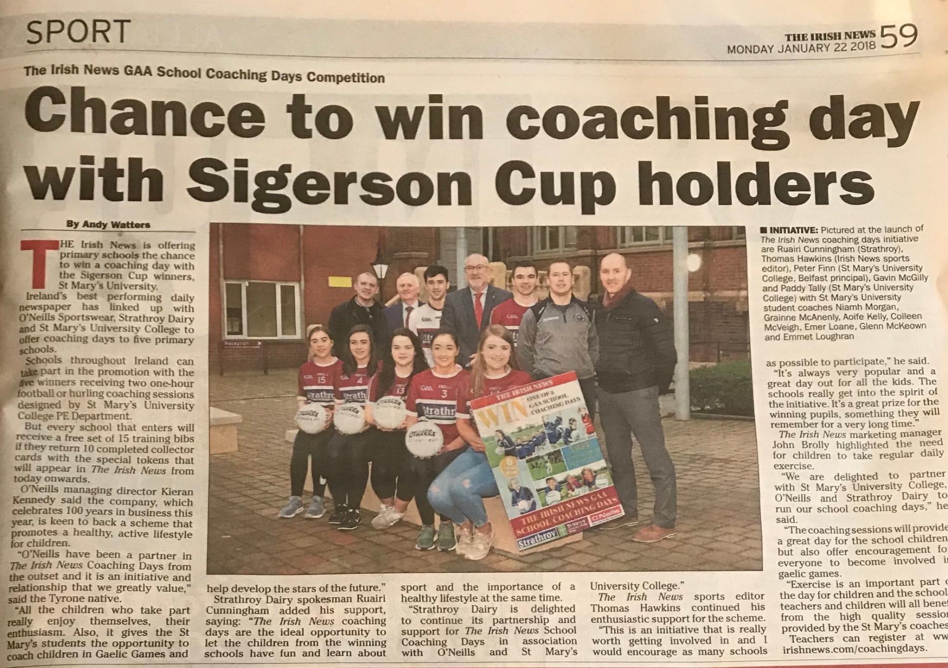 Read MoreStrathroy Dairy is delighted to continue its partnership and support for The Irish News School Coaching Days in association with O’Neills and St Mary’s University College.